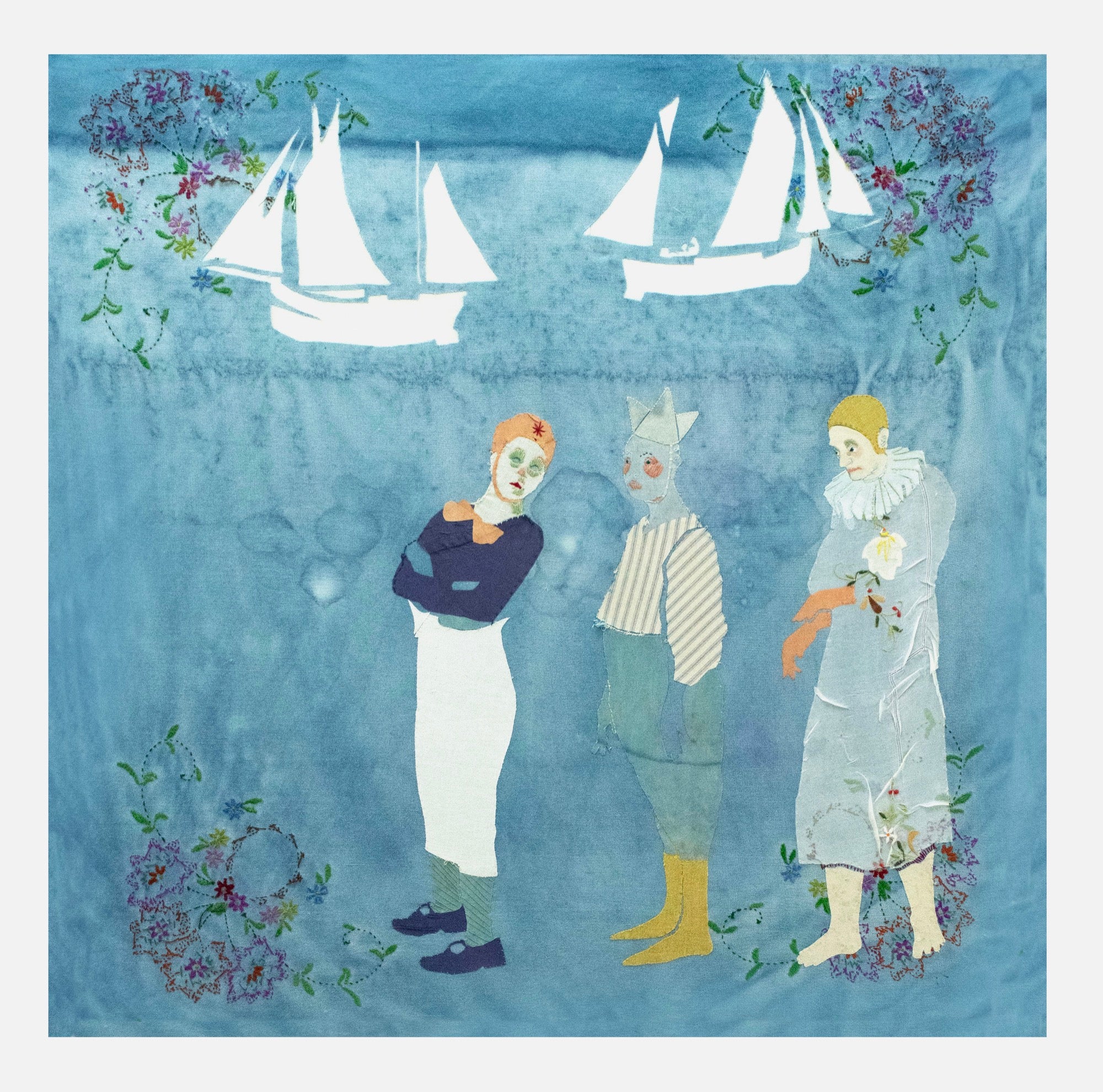 Elizabeth Loveday is an artist, mother and story teller from Cornwall. Beginning with linear drawings as a guide, she layers, dyes and hand-stitches fabric of different weights, textures and ages to create narrative and decorative works. Her work can be viewed as a visual outlet for dialogues that exist within herself and wider society. Handling humanistic themes, such as parenthood, mental health, connection and ritual, she uses characters loosely gleaned from Cornish folk tales and her own life to tell stories that exist within the community she lives in. It is at once a comment on self and place and the intermingling of both.